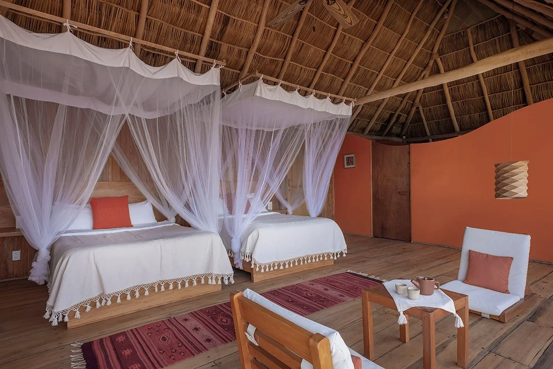 After your day of adventure, yoga, and group events, coming back to these lush and chic rooms, will recharge and relax you. Rest deeply with the serene sounds of the jungle and calm, gentle ocean waves lightly crashing onto our secluded beach as you relax in the hammock or luxurious bed.